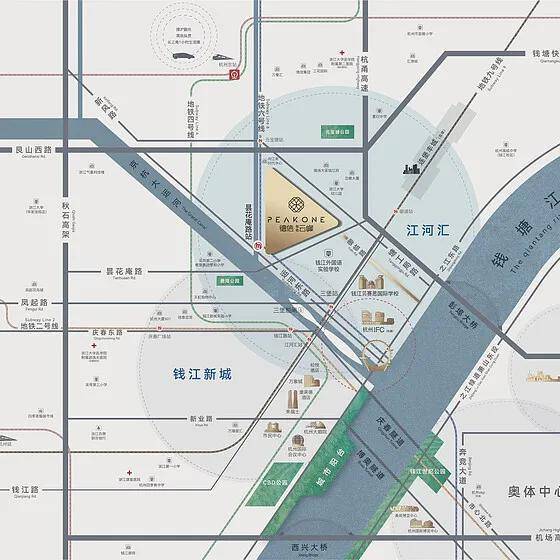 距地铁6号线昙花庵路站小于10米,互联地铁1、2、4、5号线、杭富线;距杭州东站约2公里,融入“长三角1小时生活圈”
