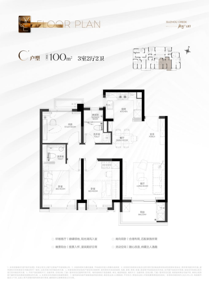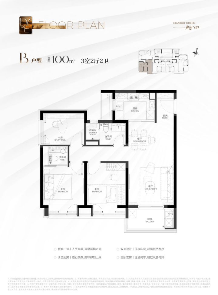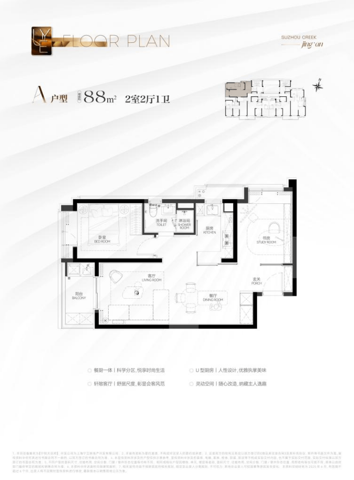 这个户型非常适合年轻小家庭上车!尺度上看,独立的玄关,仪式感与收纳功能兼具;餐客厅一体化+U字型厨房,布局合理;两房设计恰到好处。同时很好地控制了总价,千万级预算买进苏河湾核心位置的绝版机遇,地段控闭眼冲!