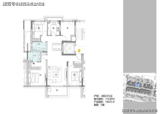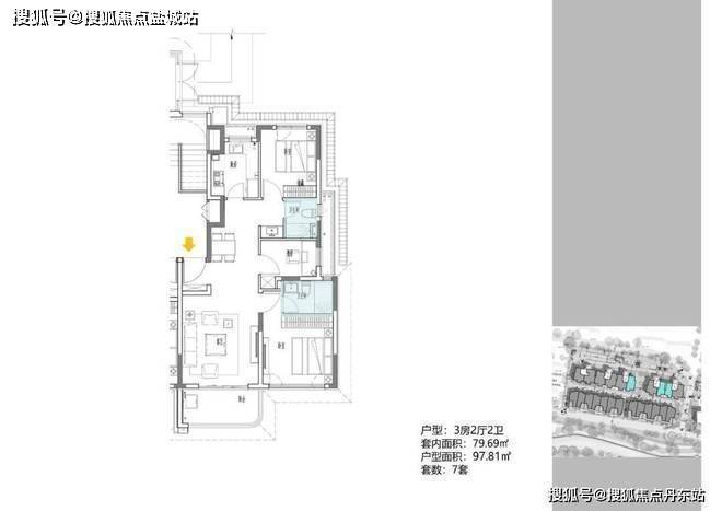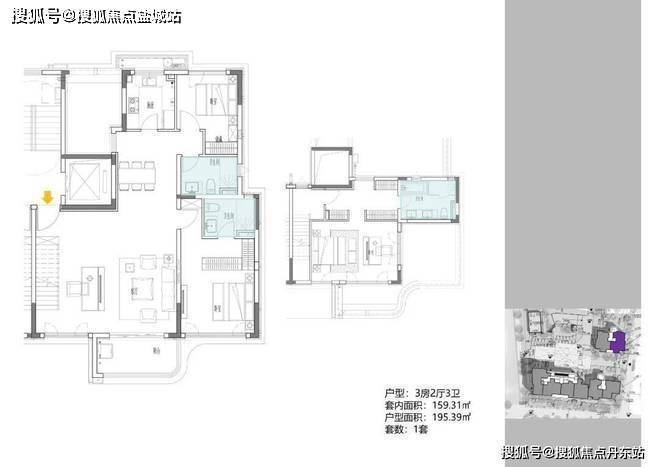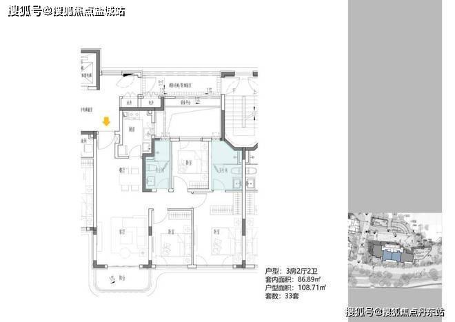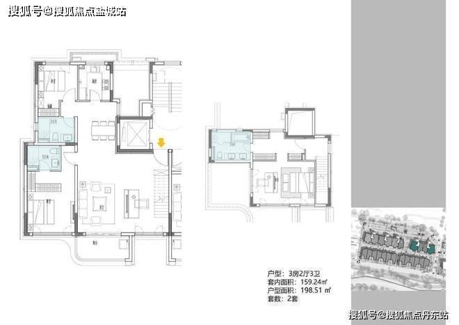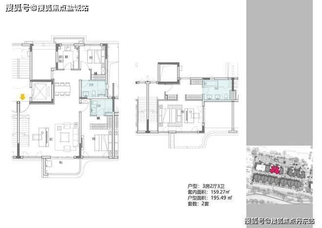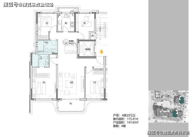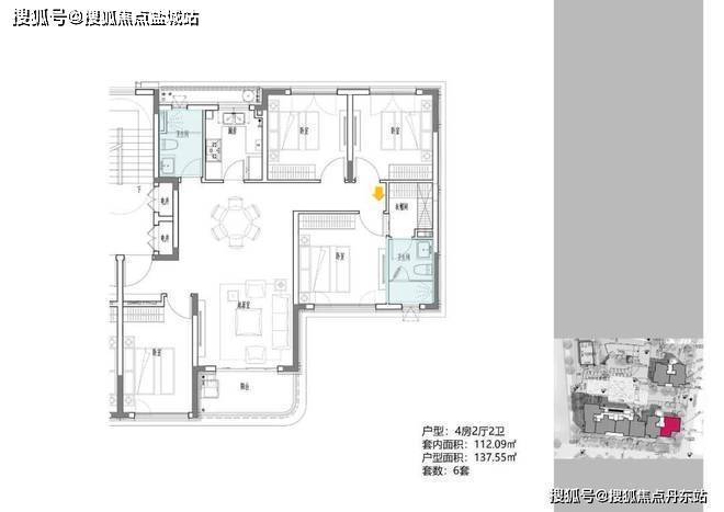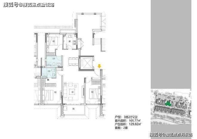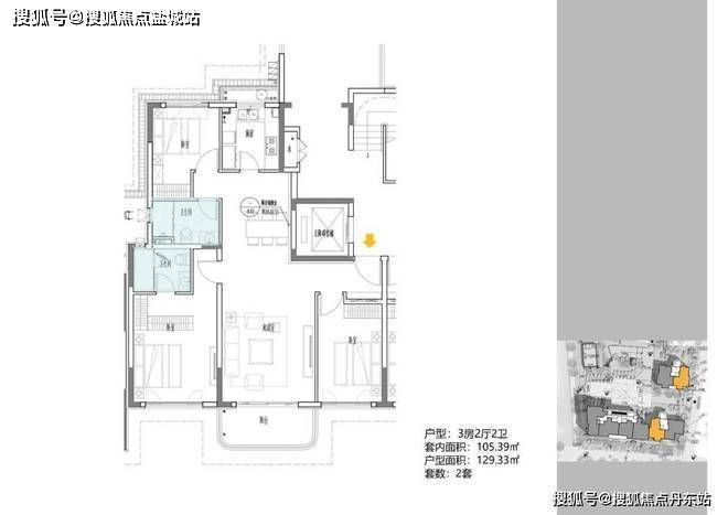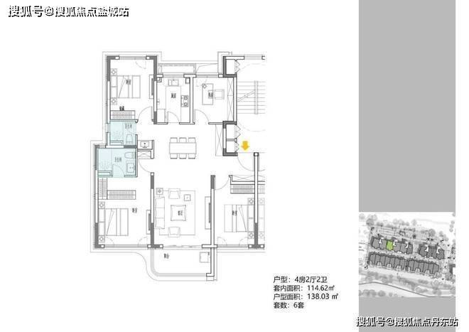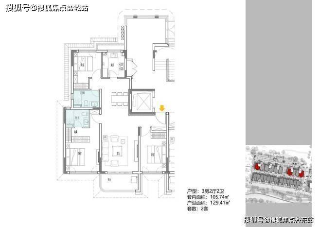 2地块容积率2.94,只有一栋小高层,共67套房源,产品建面约108-148㎡。