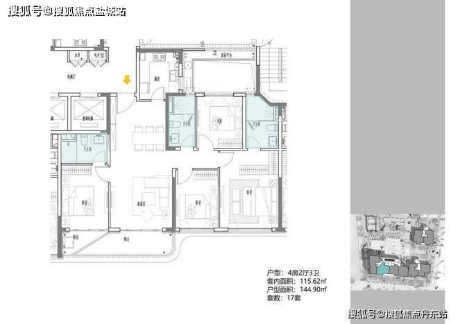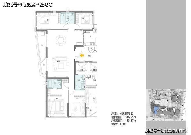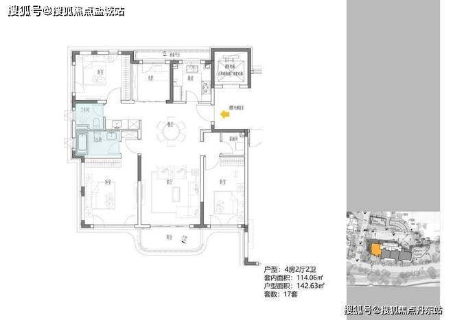 B地块,规划1栋17F住宅,建面约108-148m²高层;