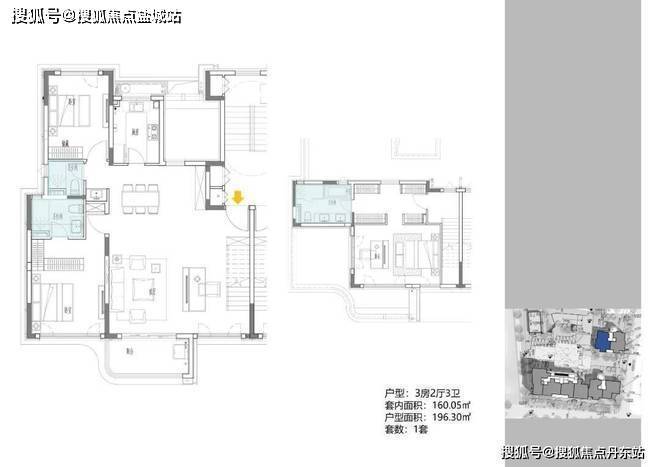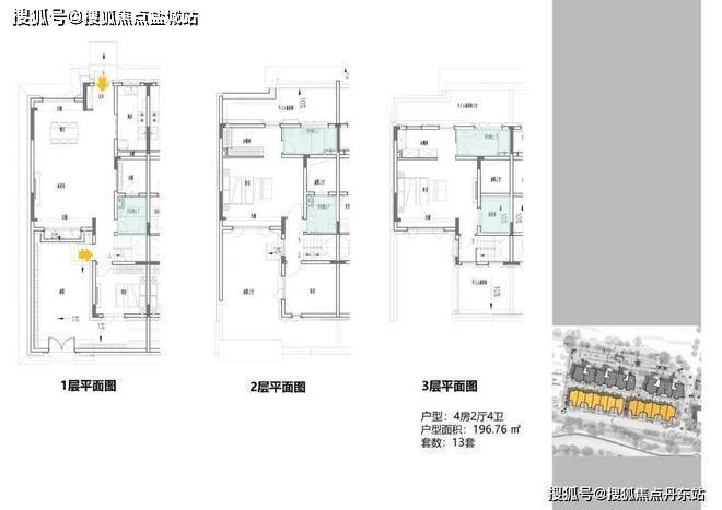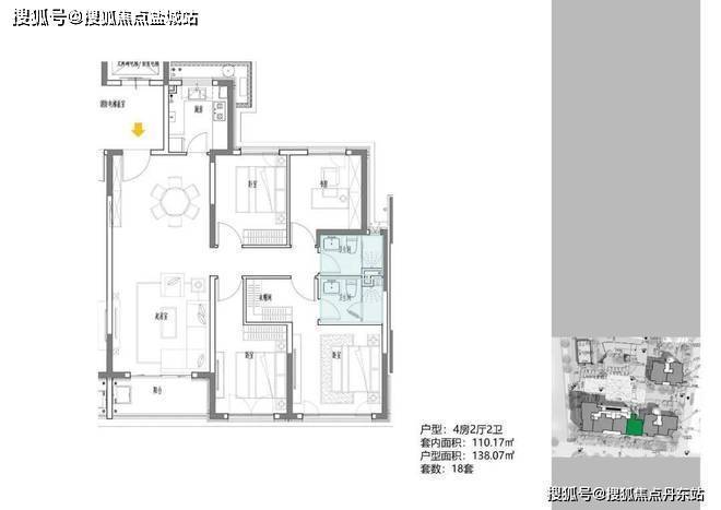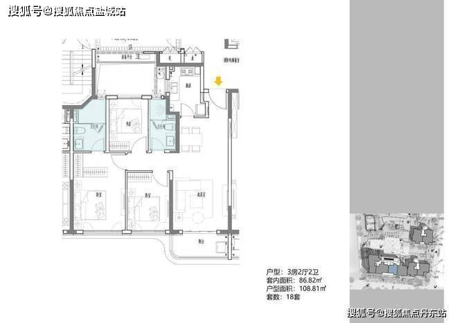 3地块容积率2.33,由一栋18层的小高层和两栋6层的花园洋房组成,共92套房源,产品建面约108-196㎡。