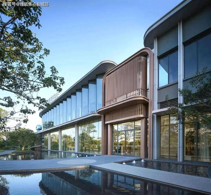 建筑主体强调结构与形式的统一,设计干净纯粹,以简洁的体块和线条为主要元素。立面虚实交织而延续,曲线金属予了轻盈流畅的弧形美感。采用纯粹体块搭配大面的通透玻璃,视野穿透,使室内外空间相互交融,形成一个有机的整体。
