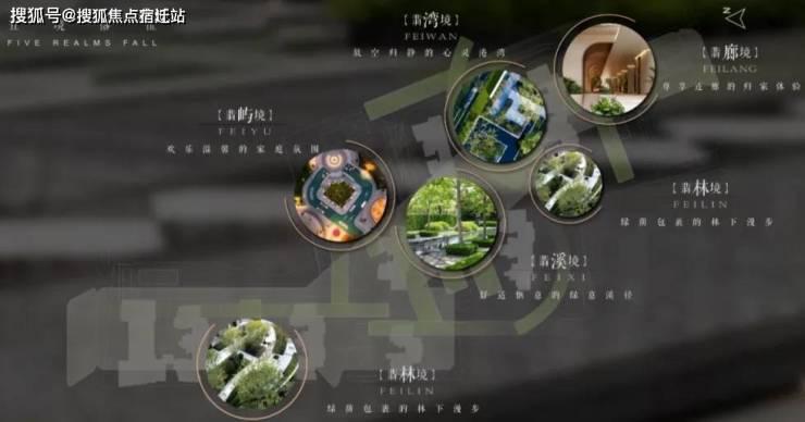 规划了“翡色五境”五大空间氛围,匠造融入时光、人文海派、自然与艺术、家庭与邻里的“四轴、三园、五区、一所”四大功能空间。