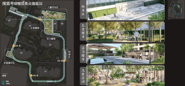 精心设计的环绕社区的400m跑道系统串联热身区、定制主题儿童活动区、老年健身区、活力健身区和休憩缓冲区五大运动活力系统,家人在社区内锻炼身体的祥和画面呼之欲出。