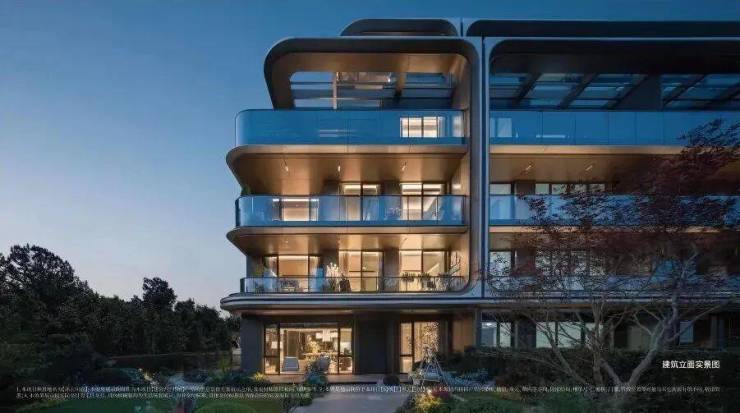 项目的叠墅立面,有着艺术品般的质感。以美拉德暖色调为基调,搭配“艺术级流体无界屏”设计,凸显流线型“游艇立面”建筑美学。大面积铝板与玻璃的流动线条模糊了建筑与自然的边界,让建筑仿佛生长在大自然一般,诗意揉融,无限契合。