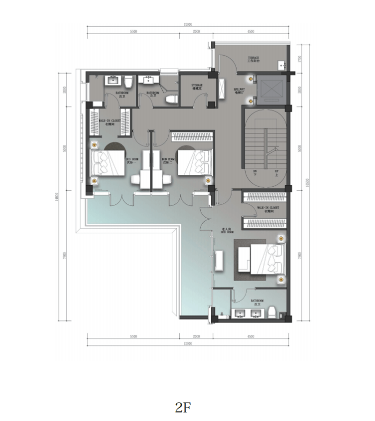 其中两室均设计有独立衣帽间,尺度阔绰不言而喻。并配备有电梯,大大节省了通往每一层的时间成本。