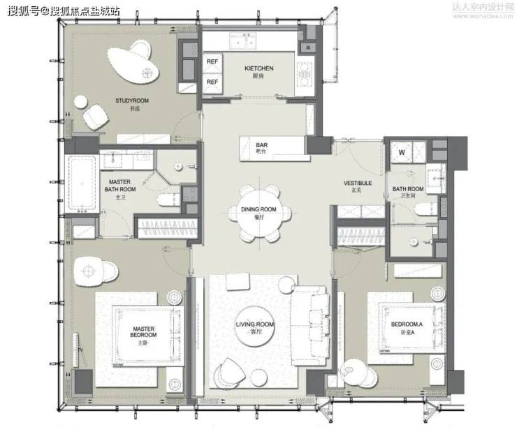 在华润杭州亚运村超高层公寓项目中,DIA主持了四个交付户型的室内设计,本文为大家重点展示其中F1户型精装样板间。