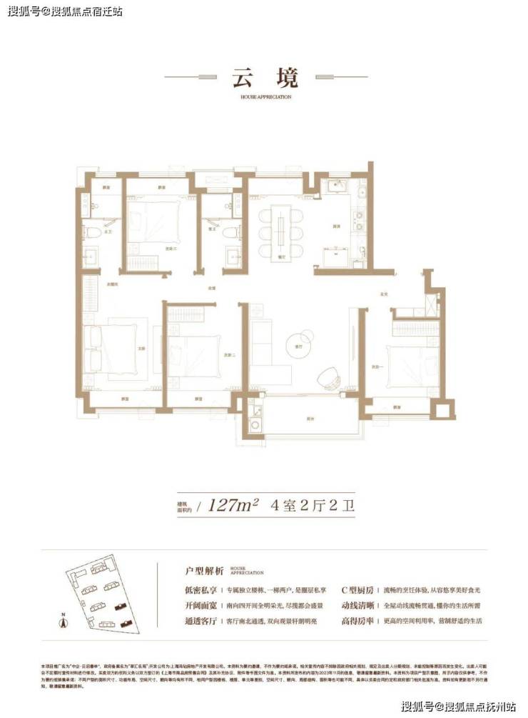 建筑约127㎡的「云境」空间内,四开间南向结合舒朗的方厅,大尺度的面宽让光赋予了生活更多的灵感。
