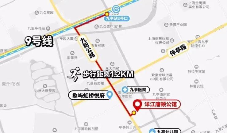 是不是地铁房,要看步行能不能进站,洋江·唐顿公馆直线距离9号线九亭站约800米,这个距离有多近?可能早餐还没吃完,你就到地铁站了。这个距离有多方便?打车软件的车可能还没到,你已经乘上了地铁。