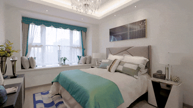 1.8米宽、0.8米深的飘窗设计,早上起床拉开飘窗,让夏日的味道立马能洒满整个房间,创造独属于自我的内心场域,一天的好心情从俯瞰园林风景开启。