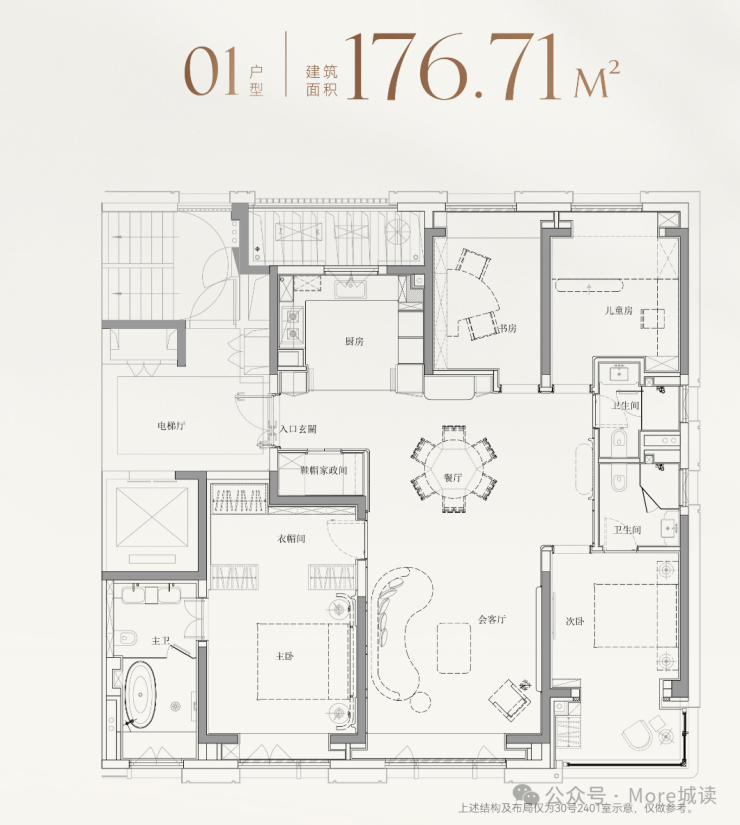 在深度定制方面,项目强调“功能可选、空间可变、品质升维”,使居所得以升华为承载居者个性与精神的容器,精准匹配人生不同阶段的上行轨迹。