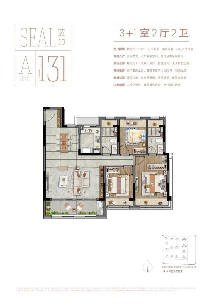 面积约143㎡精装,均价17500左右