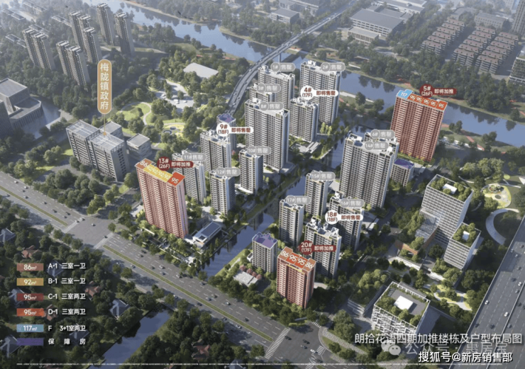 建筑上,朗拾花语售楼处电话: 400-000-0460转6666【预约热线】☎✅的18幢17-26F高层建筑,撷取“斐波那契数列”黄金比例,以疏密有致、高低有序的空间形象,成为梅陇新的城市天际线。