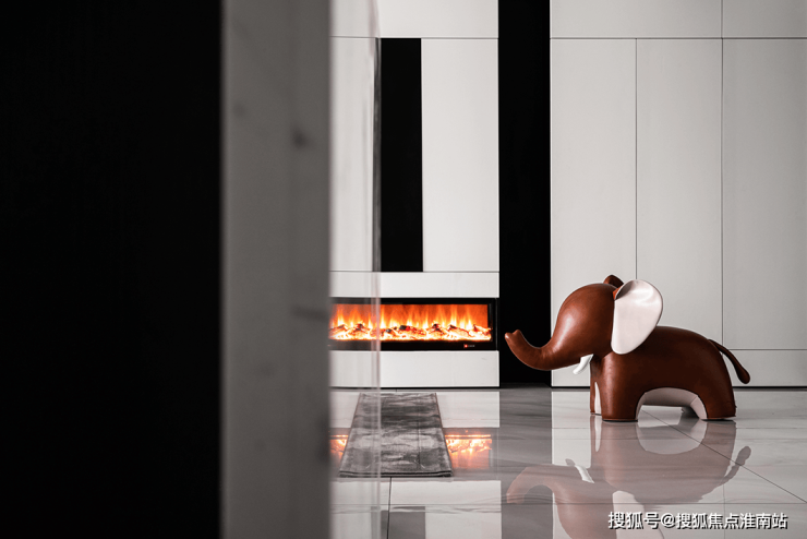 黑白配色的电视背景墙将壁炉纳入这块空间,使得本身冷色调的家瞬间温暖而治愈。