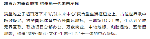 建面约约19万方万象城级商业——以探寻科技之美为主题的下一代万象商业 缔造杭州城市新中心全新商业生活目的地