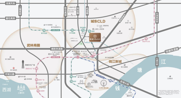 武林古韵、钱新繁华、江河汇北,三大核心板块交汇,共绘都市发展蓝图。地铁4号线黎明站,三大交通动脉在此交织,与杭州东站TOD无缝链接,共创城市新脉动。