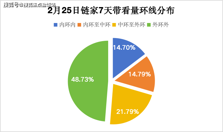 按环线细分,外环外房源带看量超过3万人次,占比约48.73%,是绝对主力;