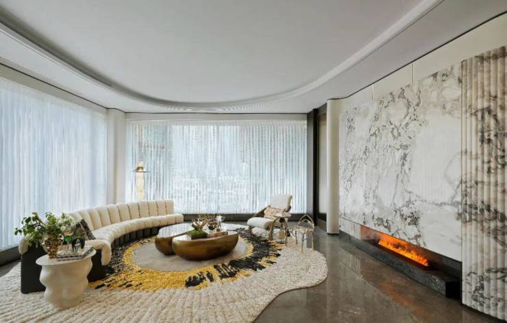 颇为有趣的是,不同大师设计的不同主题空间,承载着不同的审美与品位。例如香港CCD郑忠执笔的【翡丽385】,处处可见圆润优雅的细腻设计,再加上芬迪白、普拉达绿大理石,呈现雅致高贵的气质。