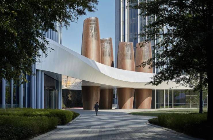 基地周边交通发达、新型业态丰富。智慧之门的建筑方案由EID Arch首席建筑师姜平主持设计,落成后的建筑群伫立于钱塘江畔,构建了一个极具辨识度的城市门户。