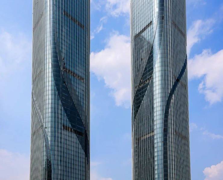 项目由中南幕墙承建了两幢写字楼的幕墙施工,包括A塔楼和B塔楼+连廊+E塔楼屋面两个标段。幕墙高度为近300米,地上61层,幕墙总面积为十多万平方米。大面幕墙形式主要分为标准板和飘带板两种,共计16363块单元。