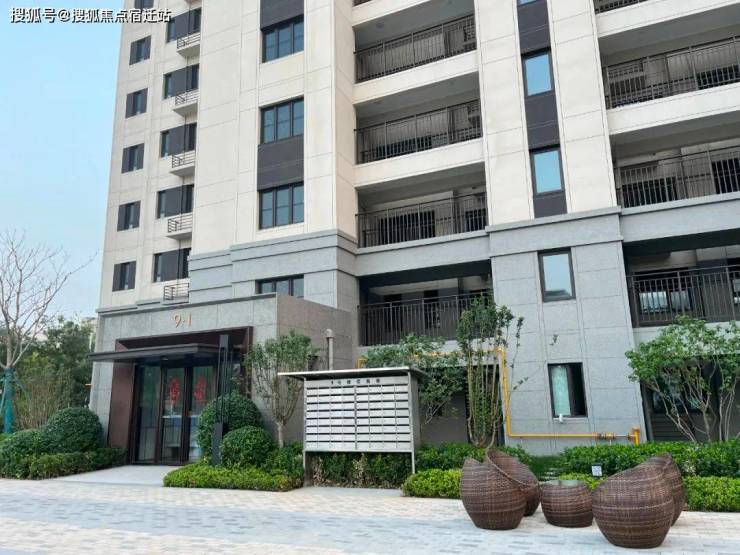 进入小区,先看外立面,单元门为灰色石材搭配仿古铜拉丝金属板,营造出归家仪式感。一二层为灰色多彩漆,三层及以上为米色涂料,咖色、灰色、米色的搭配也比较符合年轻人的审美。