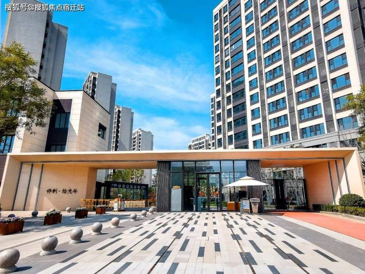 社区大门采用的是浅色石材,辅以金属线条装饰,整体设计偏年轻化,比较贴近时下流行的极简风。