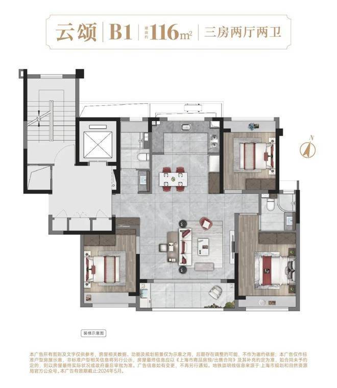 建面约95㎡展示样板实景图 交付标准以合同约定为准
