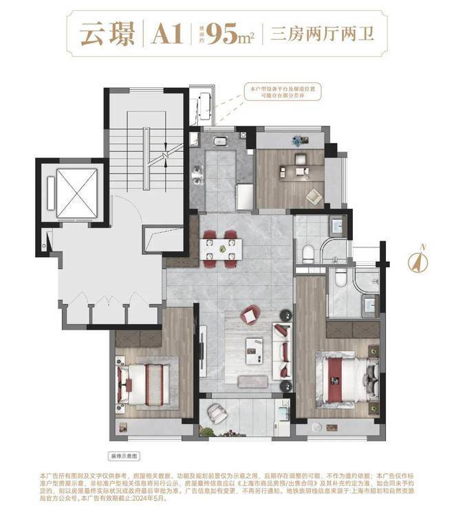 建面约95㎡展示样板实景图 交付标准以和谈约定为准