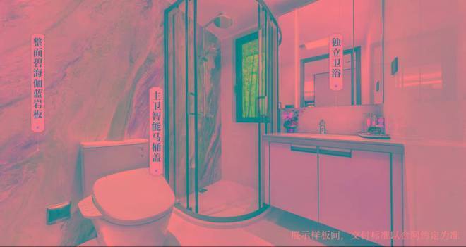 主卫配备智能马桶盖,搭配整面碧海伽蓝岩板