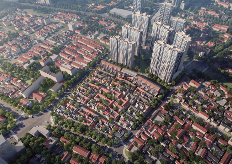 【士林华苑】二期地块包含大量历史文化保护建筑,产品打造的是【叠拼+合院】,叠拼面积段约195-310㎡,分为1-2F下叠、3、4、5F为中间的大平层,6-7F为上叠,合院地上三层,面积段约210-500㎡。