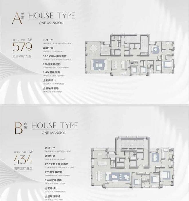 公馆的户型设计同样令人赞叹。A户型约580㎡,宽敞的空间布局,5房4厅的设计,让您的生活更加舒适。B户型约435㎡,4房3厅的格局,既满足了家庭成员的居住需求,又保证了空间的私密性。公馆采用精装大平层设计,一层一户,双会所配置,彰显尊贵品质。两梯或三梯一户的设计,让您的出行更加便捷。