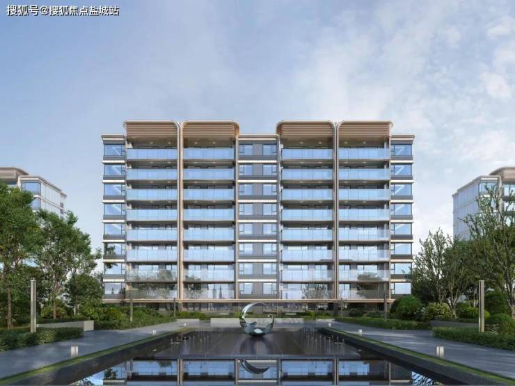 金茂锦棠的建筑立面,从项目LOGO中提取出生长线条,用于构建「向上生长」的建筑表情。以铝板在建筑外檐上勾勒出装饰框,远望下仿佛层叠的「流线画框」。南向的装饰框在楼顶与塔冠融合,最终汇聚成「海棠之芯」,如一棵向上生长的参天大树。