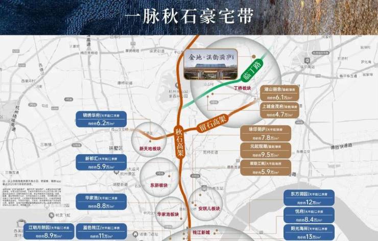 同处秋石高架沿线区域,从钱江新城、华家池等板块单价10万+/㎡的老牌顶豪,到元起观潮、咏印明庐等改善新秀,豪宅基因一脉相承。