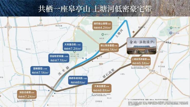 皋亭山两侧不乏天青里、湖山丽舍、田园牧歌、湖印宸山等豪宅,三站桃花湖的项目,同是叠排,与本案价格相差几百万。