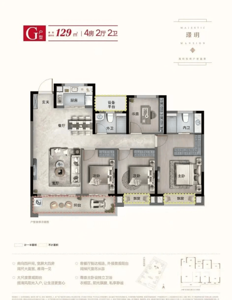 高层G户型 建筑面积约129㎡ 4房2厅2卫