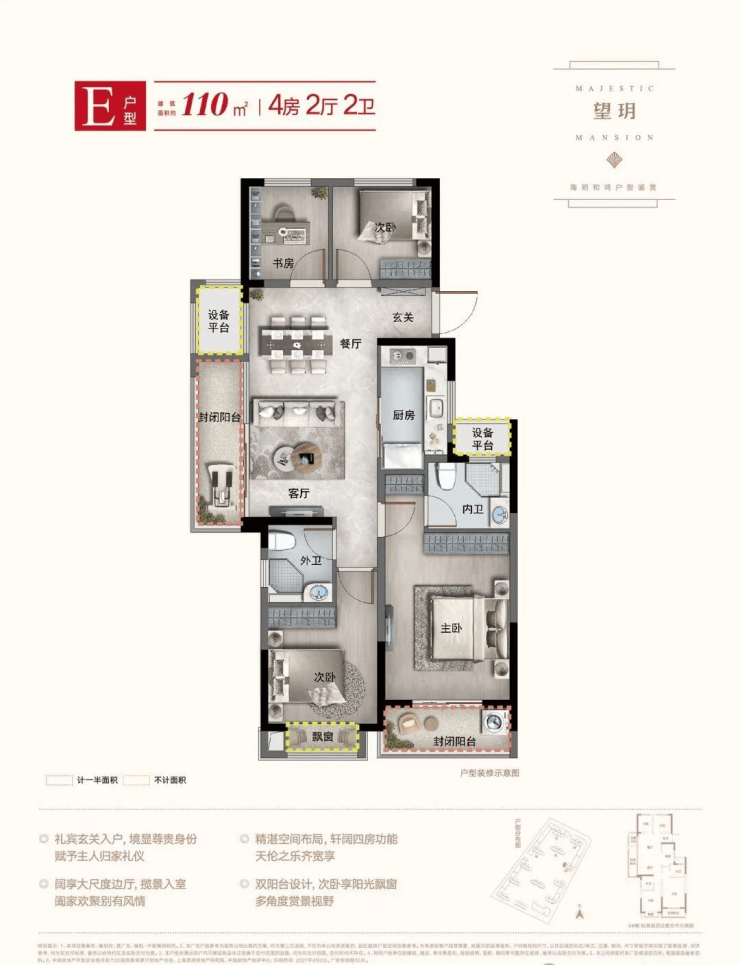 高层 E户型 建筑面积约110㎡ 4房2厅2卫
