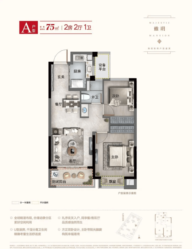 宽景阳台:客餐厅豁达相连,外接双开间宽屏大阳台,畅享四季景致