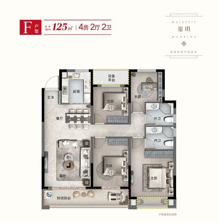 奢华四房:户型全明方正,动静分区,精湛空间布局