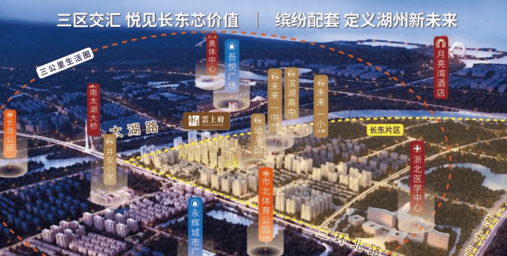 周边幼儿园、瑶台小学(规划中)、未来一中、滨湖高中(建设中)、湖师附小井安小学、湖州四中等优质教育资源环伺(非指定学区,以政府公布学区政策为准)。