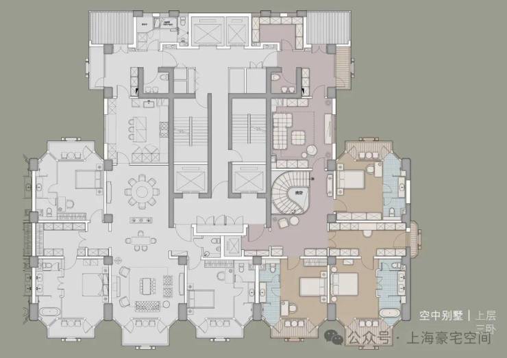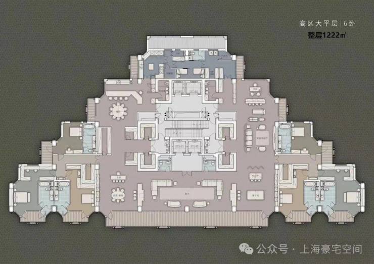 另外,在下面的南侧塔楼顶部,还设计了一座停机坪。这也是全上海目前独一无二的自带屋顶160平米停机坪的豪宅,只为匹配多财多亿的富豪阶层。
