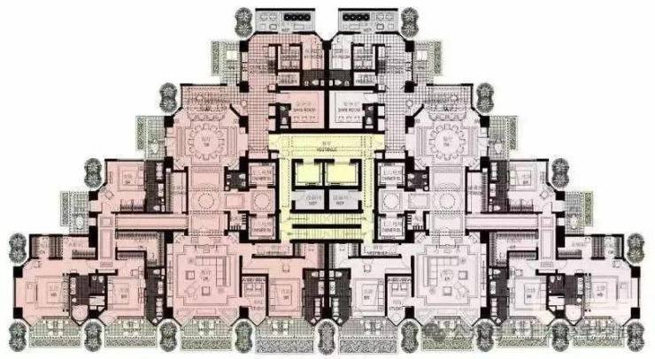 独特的金字塔户型设计,仪式感超强。南侧住宅平面采用了三角形造型,四间豪华套房,超大客餐厅,充分利用南向面宽,不浪费一丝一毫江景,并且每个房间都有超大阳台。