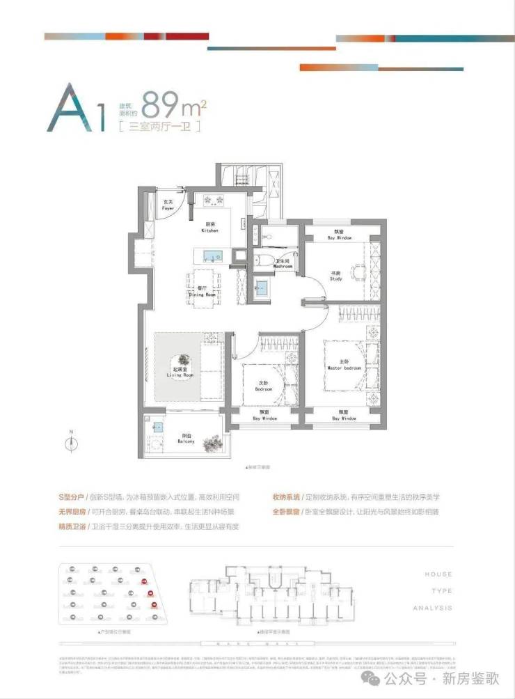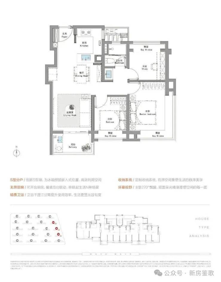 小户型做到了全明3房,动静分离。小户型如何“越住越大”?这就不得不提到这个户型的一大创新:S墙。