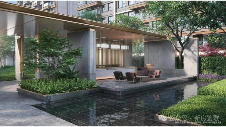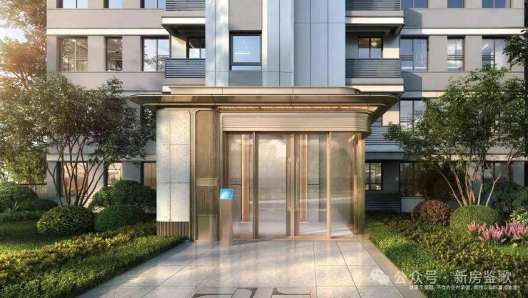 项目东西两侧以酒店为灵感打造的门厅,以奢石为背景墙,东侧还有环形落客区,内部每一幢楼栋大门也尽显精致,强烈的归家仪式感扑面而来。