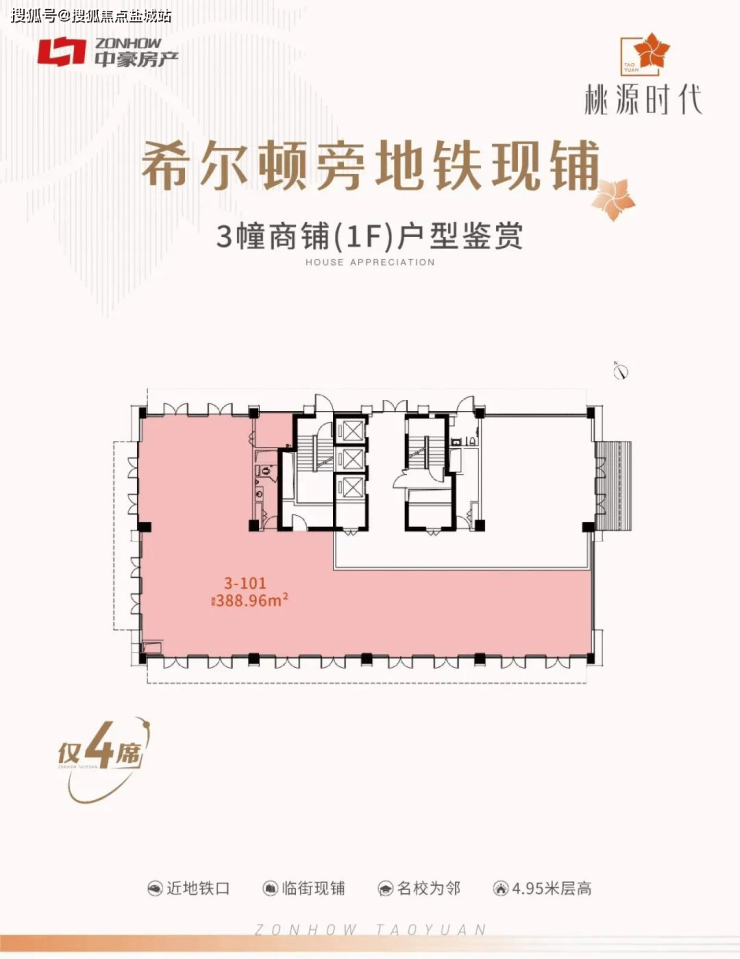 层高4.95米,3面采光