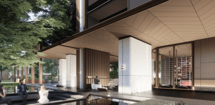 同时,以超奢戏水池与尊享休闲会所为核心,联动架空层,串联休憩廊架与横向端景,打造核心奢享场景。