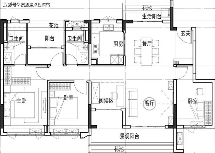 百变户型,阳台可并入次卧、阅读区可并入客厅,空间感更强;