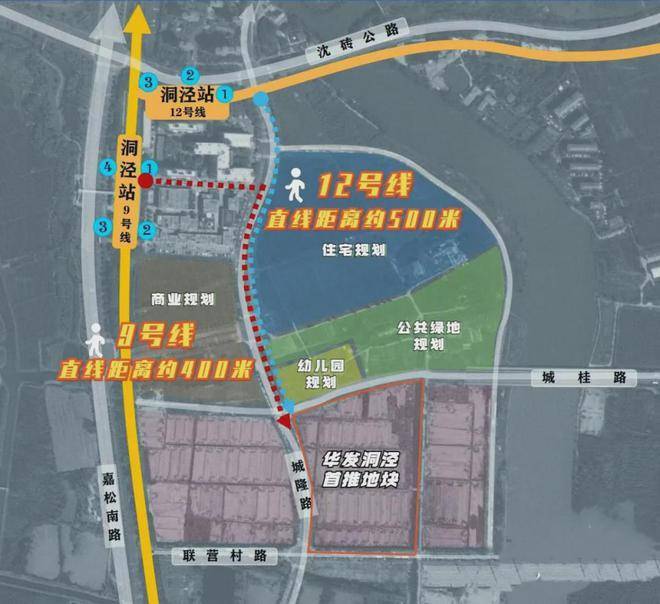 ·距9号线洞泾站直线距离约400米,12号线(在建中)西延伸线洞泾站位于9号线洞泾站旁,直线距离约500米,双轨交汇,帷幄交通大境。
