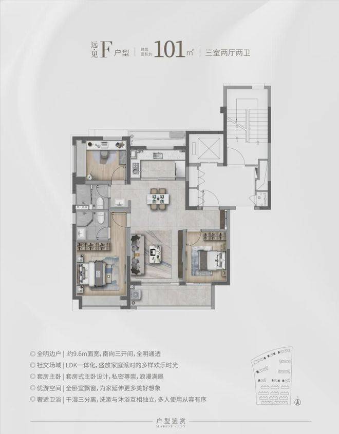 远·见建筑面积约101㎡F户型