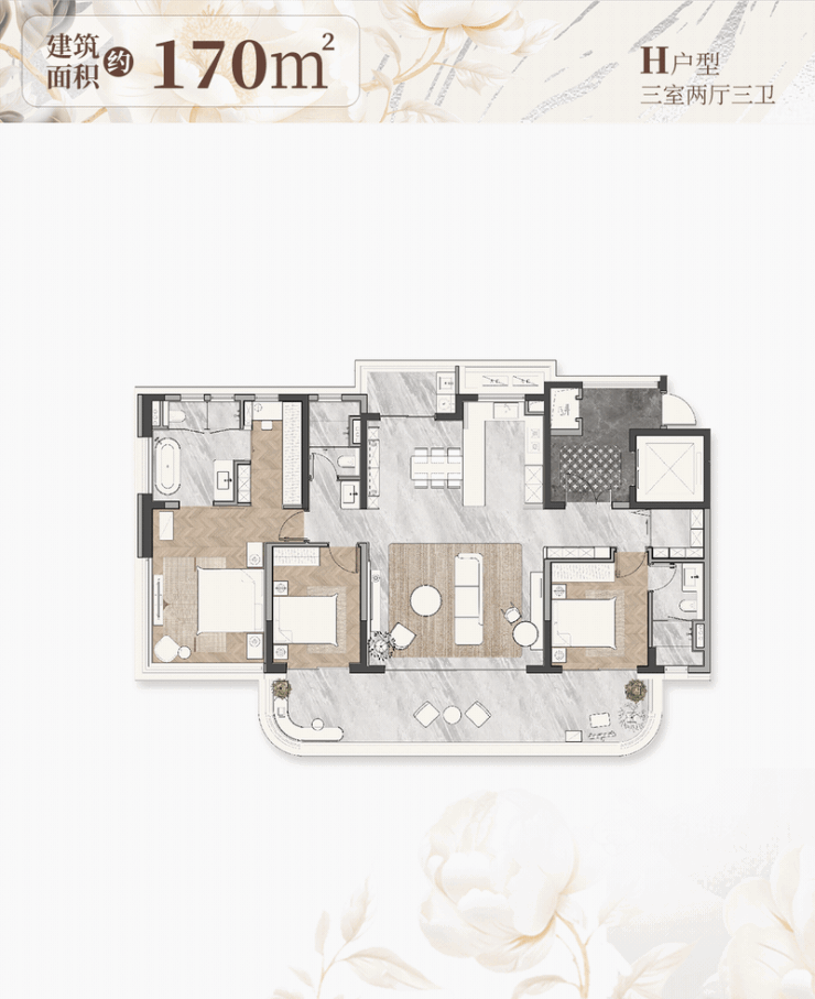 170㎡奢阔三房,南北双阳台,270°双面屏极致主卧,谁说阳光平权,这一套采光有特权!