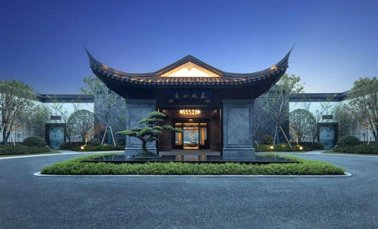 春风如意以一方粉墙黛瓦的中式院落,重新唤起江南人的乡愁。飞檐斗拱的传统格局,还有形如满月的中国古典建筑月洞门的建筑细节。再现传统建筑格局,以亭台水榭,雕梁画栋的中式建筑,致敬青石街巷的水韵江南。